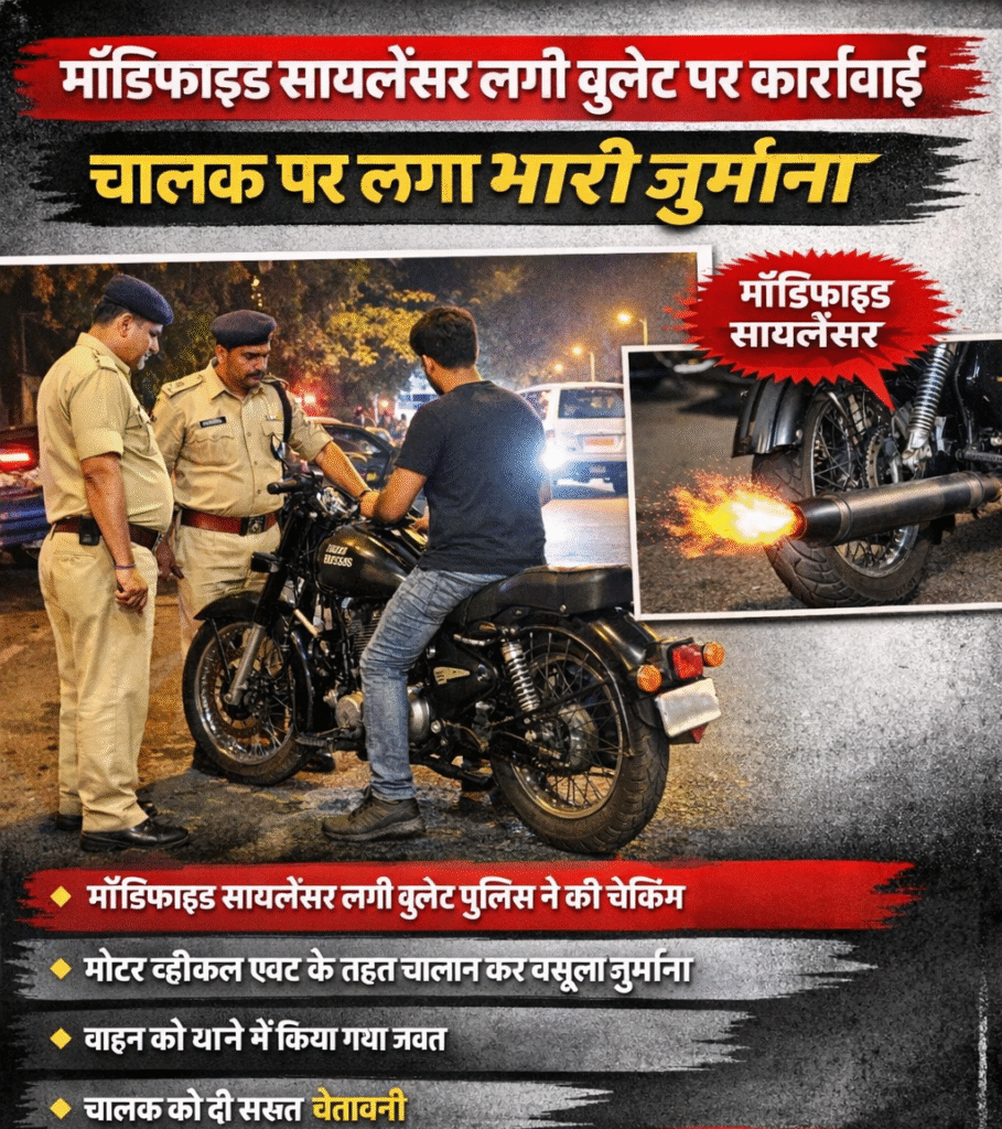 मॉडिफाइड सायलेंसर लगी बुलेट पर कार्रवाई, चालक पर लगाया गया जुर्माना कटनी।। शहर में तेज आवाज एवं मॉडिफाइड सायलेंसर लगी...
