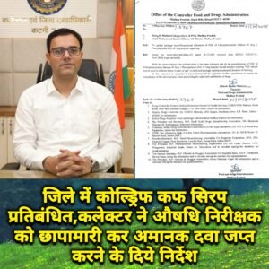 जिले में कोल्ड्रिफ कफ सिरप प्रतिबंधित,कलेक्टर ने औषधि निरीक्षक को छापामारी कर अमानक दवा जप्त करने के दिये निर्देश कटनी।।...