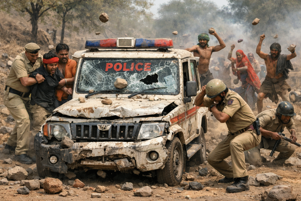 कानून को खुली चुनौती:-लूट के आरोपी को पकड़ने गई पुलिस पर पारधियों का संगठित हमला, पथराव से वाहन क्षतिग्रस्त; दो गिरफ्तार, मुख्य आरोपी फरार