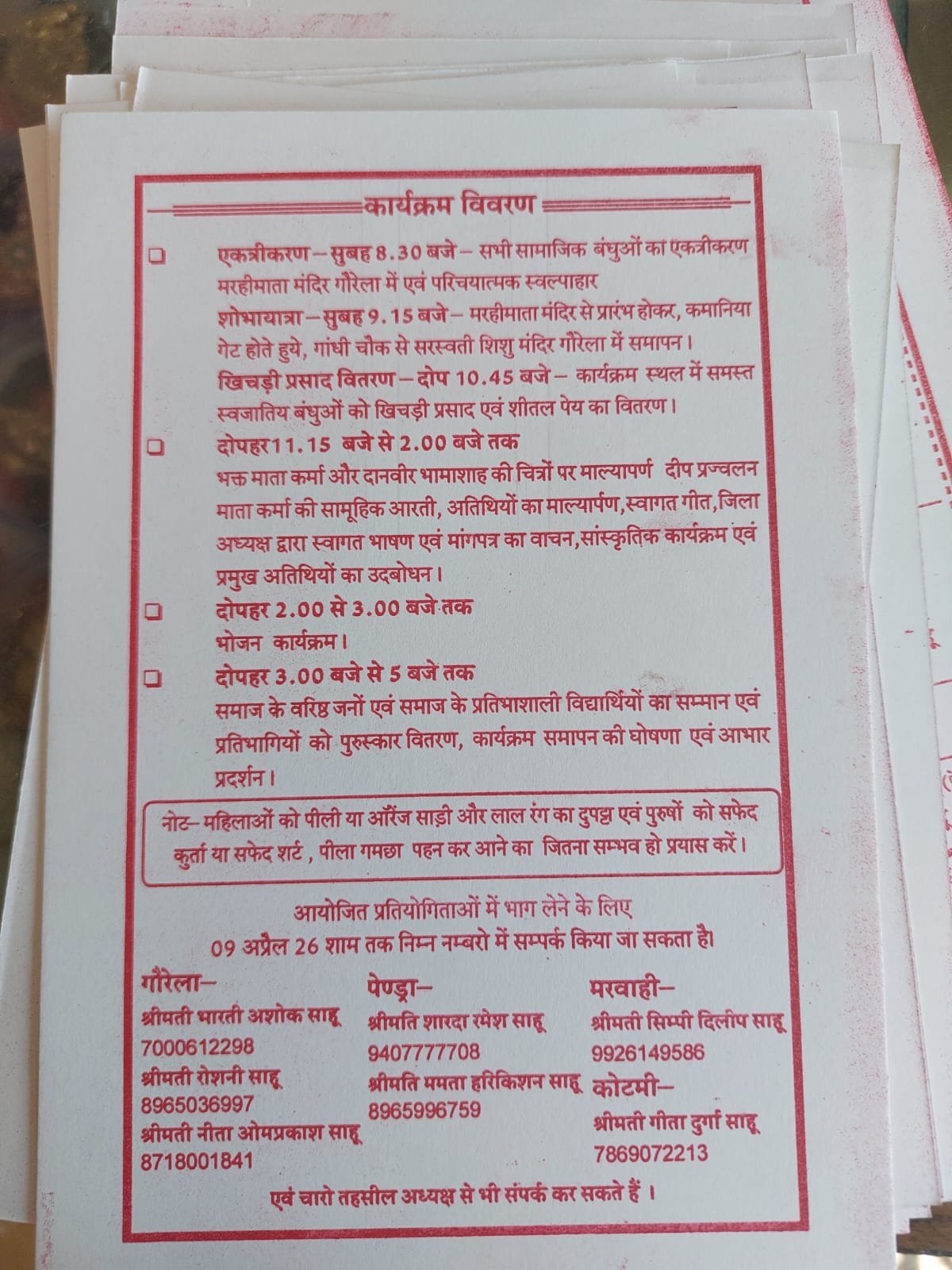 इस भव्य आयोजन में मुख्य रूप से नर्मदा खण्ड साहू समाज के अध्यक्ष रमेश साहू , पेन्ड्रा तहसील अध्यक्ष आनन्द साहू , कोटमी तहसील अध्यक्ष कृष्ण कुमार साहू (लाला ) और मरवाही तहसील अध्यक्ष दिलीप साहू सहित जिले व तहसील स्तर के सभी प्रमुख पदाधिकारी विशेष रूप से उपस्थित रहेंगे।