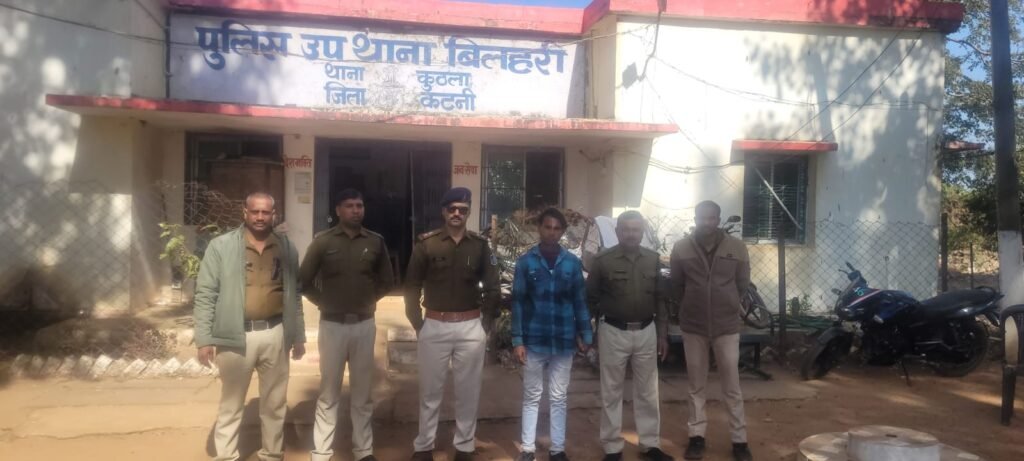 कटनी।। लंबे समय से फरार आरोपियों की गिरफ्तारी अभियान के तहत बिलहरी पुलिस को सफलता मिली है। चौकी प्रभारी बिलहरी सुयश पाण्डेय ने टीम के साथ कार्रवाई करते हुए एक वर्ष से फरार स्थायी वारंटी को गिरफ्तार किया। विश्वसनीय मुखबिर की सूचना पर ग्राम बिलहरी में दबिश देकर पुलिस ने पंकज चौधरी पिता स्व. कमलेश चौधरी (26 वर्ष), निवासी बिलहरी थाना कुठला को घेराबंदी कर पकड़ा। गिरफ्तार आरोपी को न्यायालय में पेश किया गया।