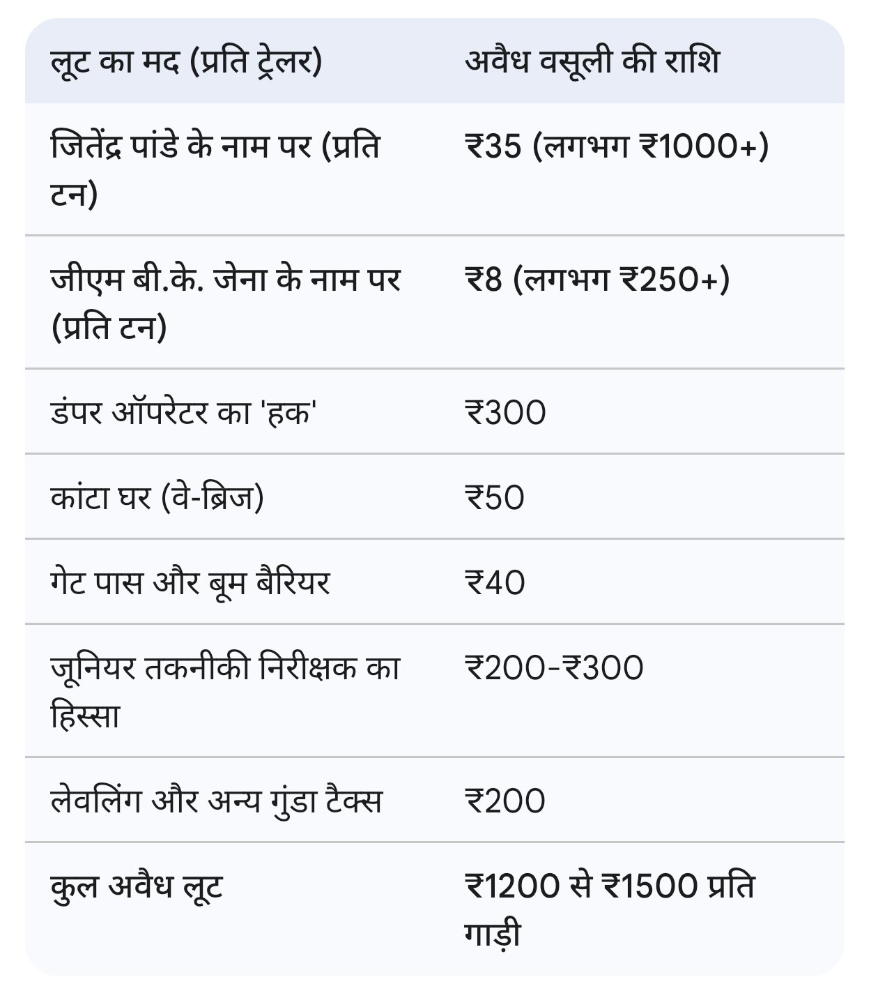 प्रोजेक्ट में तैनात तकनीकी निरीक्षक जितेंद्र पांडे का नाम इस समय सबसे ज्यादा चर्चा में है। आरोप है कि जितेंद्र पांडे के नाम पर प्रति टन ₹35 की अवैध वसूली खुलेआम की जा रही है। हैरानी की बात यह है कि यह वसूली अब किसी छिपे हुए तरीके से नहीं, बल्कि ‘सिस्टम’ का अनिवार्य हिस्सा बन चुकी है। जो पैसा नहीं देता, उसकी गाड़ियां डंप कर दी जाती हैं या लोडिंग लिस्ट में उसका नंबर सबसे पीछे धकेल दिया जाता है।