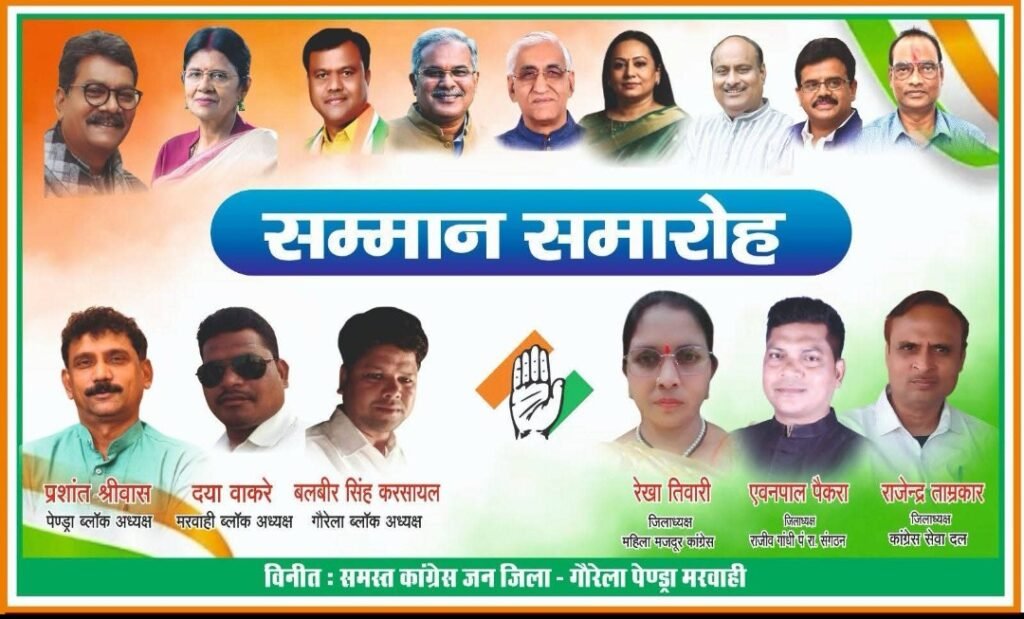 जिला गौरेला–पेंड्रा–मरवाही में कांग्रेस पार्टी के संगठनात्मक ढांचे को सशक्त बनाने की दिशा में एक महत्वपूर्ण कार्यक्रम का आयोजन किया गया। इस अवसर पर जिले के तीनों ब्लॉक अध्यक्षों के शपथ ग्रहण एवं सम्मान समारोह के साथ-साथ सेवा दल कांग्रेस, महिला मज़दूर कांग्रेस एवं राजीव गांधी पंचायत राज संगठन के जिला अध्यक्षों का भी सम्मान किया गया।
