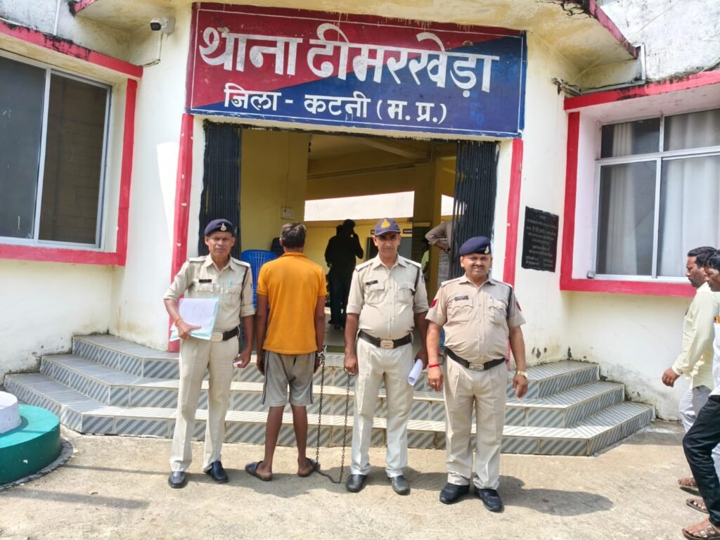 कटनी।। थाना प्रभारी ढीमरखेडा अभिषेक चौबे के नेतृत्व में ग्राम सनकुई में एक व्यक्ति को धारदार बका के साथ गिरफ्तार किया गया। ढीमरखेड़ा पुलिस को सूचना मिली कि ग्राम सनकुई में एक व्यक्ति अवैध रूप से लोहे का धारदार बका लिए हुए हैं। सूचना पर आरोपी शंभू प्रसाद कुम्हार को विधिवत्त गिरफ्तार किया गया और माननीय न्यायालय के समक्ष पेश किया गया जहाँ से आरोपी कों जेल भेजा गया।
