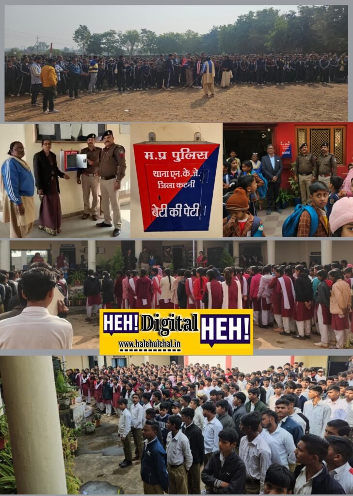 कटनी।। जिले के थाना एन.के.जे.अंतर्गत एक निजी विद्यालय सहित शासकीय उच्चतर माध्यमिक विद्यालय एनकेजे में पुलिस द्वारा ऑपरेशन मुस्कान एवं सड़क सुरक्षा अभियान के तहत जनसंवाद कार्यक्रम आयोजित किया गया। इस दौरान दोनों स्कूलों में पुलिस अधीक्षक अभिनय विश्वकर्मा की पहल पर “बेटी की पेटी” शिकायत पेटी स्थापित की गई। पुलिस मुख्यालय भोपाल के निर्देशानुसार चल रहे ऑपरेशन मुस्कान अभियान के तहत गुम हुए नाबालिग बच्चों की दस्तयाबी के साथ-साथ स्कूलों और कॉलेजों में छात्र-छात्राओं से संवाद स्थापित कर जागरूक किया जा रहा है। इसी क्रम में अतिरिक्त पुलिस अधीक्षक संतोष डेहरिया तथा उप पुलिस अधीक्षक हेडक्वार्टर उषा राय के मार्गदर्शन में थाना एनकेजे पुलिस ने दोनों शिक्षण संस्थानों में व्यापक जनसंवाद कर करीब 1000 छात्रों को सुरक्षा और जागरूकता से जुड़े महत्वपूर्ण बिंदुओं की जानकारी दी। जनसंवाद के दौरान छात्रों को सायबर सुरक्षा, सोशल मीडिया के सुरक्षित उपयोग, सड़क सुरक्षा नियमों तथा स्व-सुरक्षा के उपायों की जानकारी दी गई। “बेटी की पेटी” का उद्देश्य छात्र-छात्राओं को भयमुक्त वातावरण उपलब्ध कराना है, ताकि वे बिना झिझक अपनी समस्याएं या किसी प्रकार की शिकायत पुलिस तक पहुंचा सकें। छात्र किसी के द्वारा परेशान करने, पीछा करने, सोशल मीडिया से संबंधित परेशानी, परिसर के आसपास अवांछनीय गतिविधियों या किसी भी अन्य समस्या को इस शिकायत पेटी के माध्यम से निडर होकर दर्ज करा सकेंगे। थाना स्तर पर शिकायत पेटी का साप्ताहिक निरीक्षण किया जाएगा तथा प्राप्त शिकायतों पर पुलिस द्वारा त्वरित और वैधानिक कार्रवाई सुनिश्चित की जाएगी, ताकि विद्यार्थियों को सुरक्षित एवं सहयोगी माहौल मिल सके।
