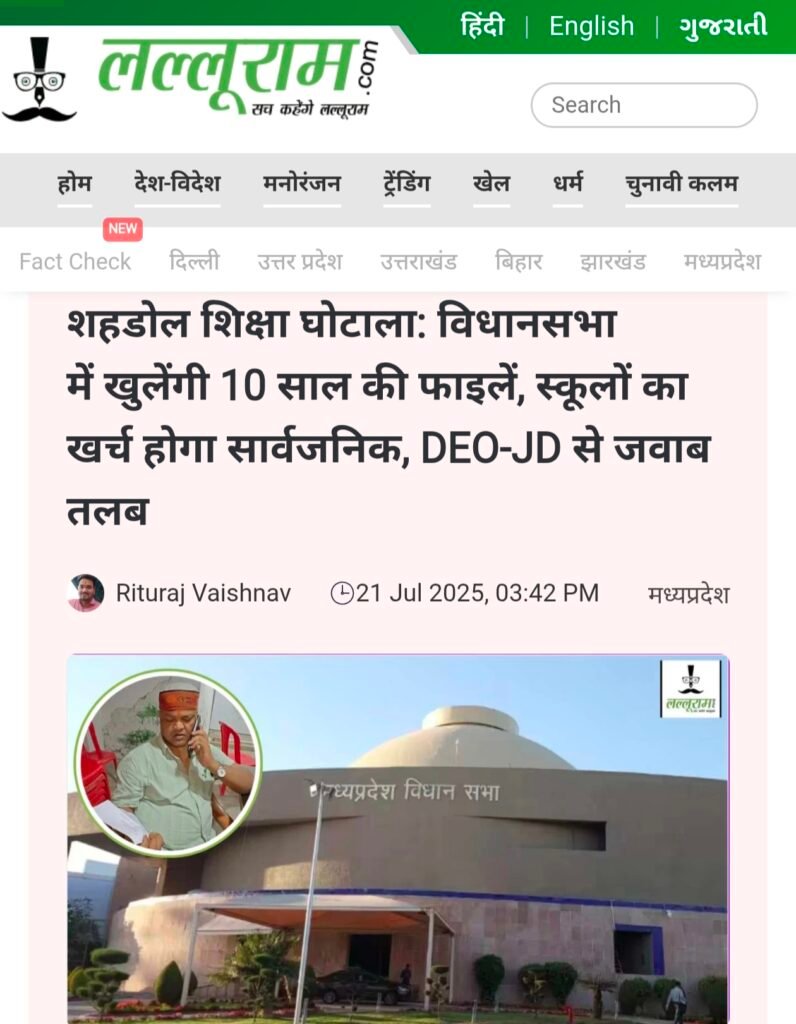 शहडोल जिले में शिक्षा विभाग के करोड़ों के घोटाले की चर्चा आज भी आम लोगों की जुबान पर है। शिक्षकों से लेकर अभिभावकों तक का सवाल है कि बच्चों की पढ़ाई के नाम पर करोड़ों रुपये डकार लिए गए और दोषियों पर कार्रवाई तो दूर, मामले की चर्चा तक बंद कर दी गई। यह स्थिति सरकार और जनप्रतिनिधियों, दोनों की विश्वसनीयता पर गहरा सवाल खड़ा करती है।