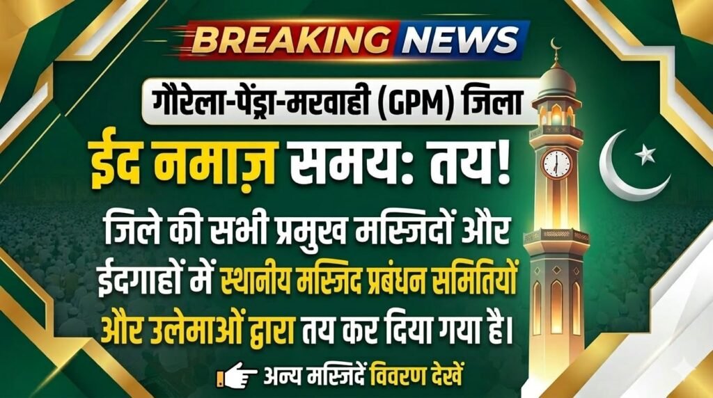 गौरेला-पेंड्रा-मरवाही (GPM) जिले में ईद-उल-फित्र की नमाज का समय निर्धारित, जानें किस मस्जिद व ईदगाह में कितने बजे होगी नमाज