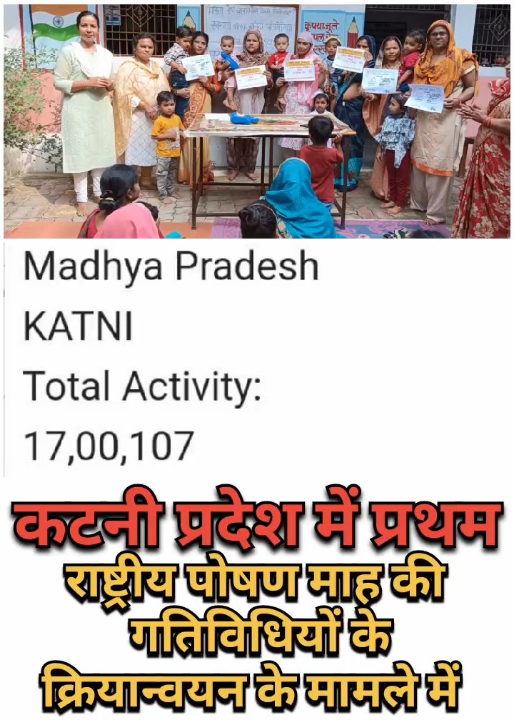 राष्ट्रीय पोषण माह की गतिविधियों के क्रियान्वयन के मामले में कटनी प्रदेश में प्रथम