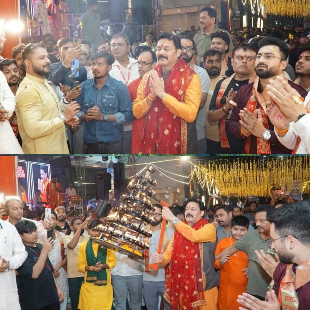 नवरात्र पर्व की सप्तमी पर शहर में आयोजित धार्मिक आयोजनों में शामिल हुए पूर्वमंत्री संजय सत्येन्द्र पाठक