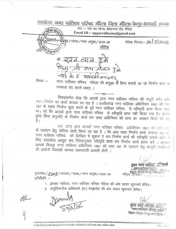 गौरेला का ‘दबंग’ कर्मचारी: कोर्ट से केस हारा, दावे हुए खारिज, फिर भी उसी जमीन पर बेखौफ चल रहा अवैध निर्माण!