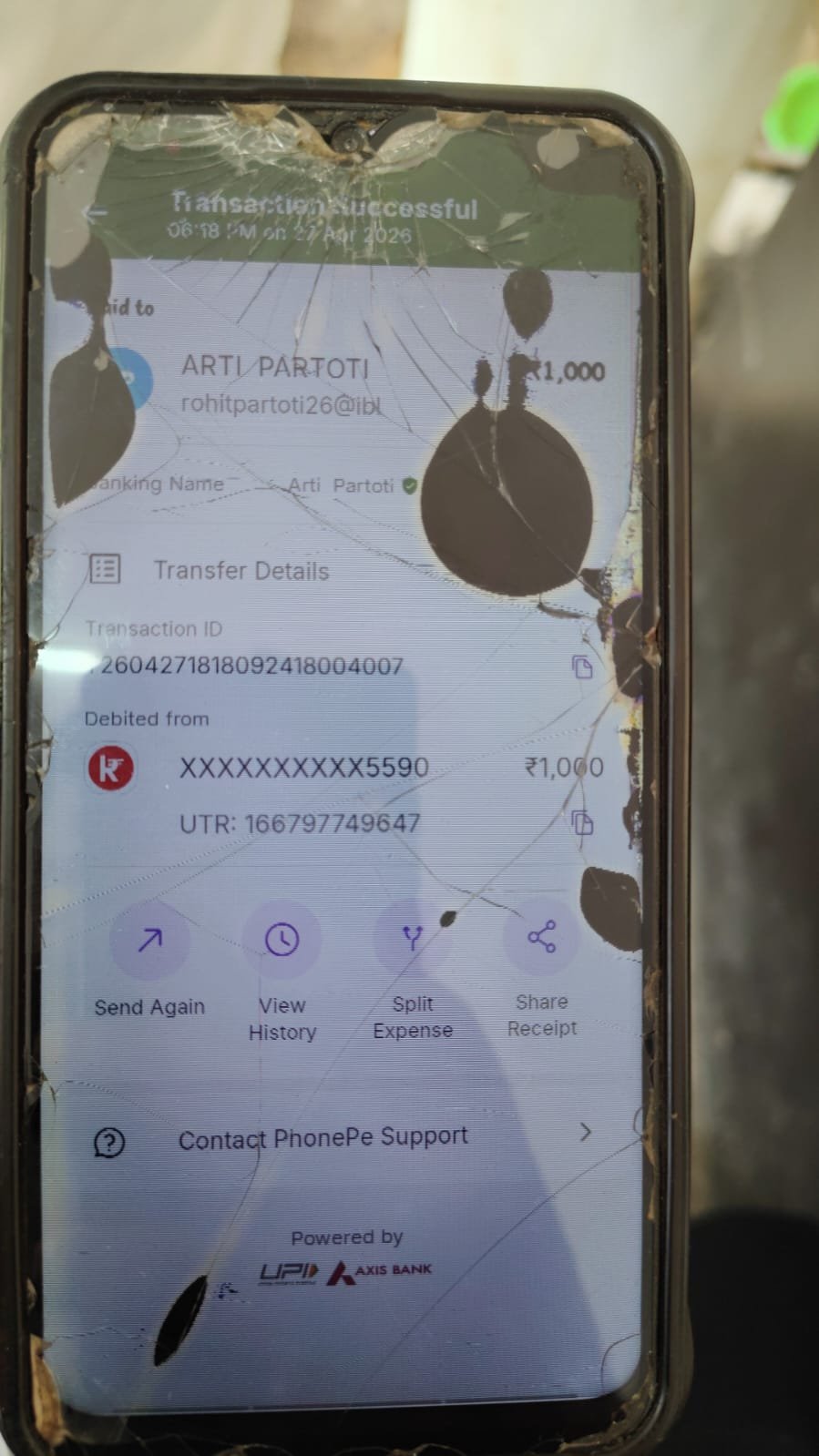 फोन पे और कैश में वसूली: तपेश्वर ने बताया कि डॉक्टर के कहने पर उन्होंने ₹1000 एक ‘आरती परतोती’ नाम की महिला के फोन पे (PhonePe) पर ट्रांसफर किए और ₹1800 नकद दिए। डॉक्टर ने यह कहकर पैसे लिए कि ब्लड की जांच बाहर से करानी होगी।