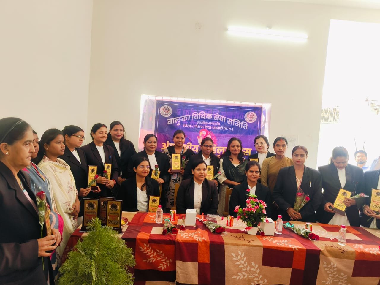 अंतर्राष्ट्रीय महिला दिवस हर वर्ष बड़े ही हर्ष और उल्लास के साथ विश्व भर में महिलाओं के प्रति सम्मान, प्रशंसा और अधिकार के प्रति जागरूक करने के लिए मनाया जाता है। कार्यक्रम की मुख्य अतिथि माननीय जिला एवं सत्र न्यायाधीश श्रीमती एकता अग्रवाल, मुख्य न्यायाधीश मजिस्ट्रेट सी महेश बाबू साहू जी एवं न्यायिक दंडाधिकारी प्रथम श्रेणी कुमारी सीमा जगदल्ला जी के द्वारा व्यवहार न्यायालय पेंड्रा रोड में कार्यरत महिला अधिवक्ता गण एवं समस्त महिला कर्मचारी गण को पुष्पगुच्छ भेंट कर मोमेंटो प्रदान कर सम्मानित किया गया।