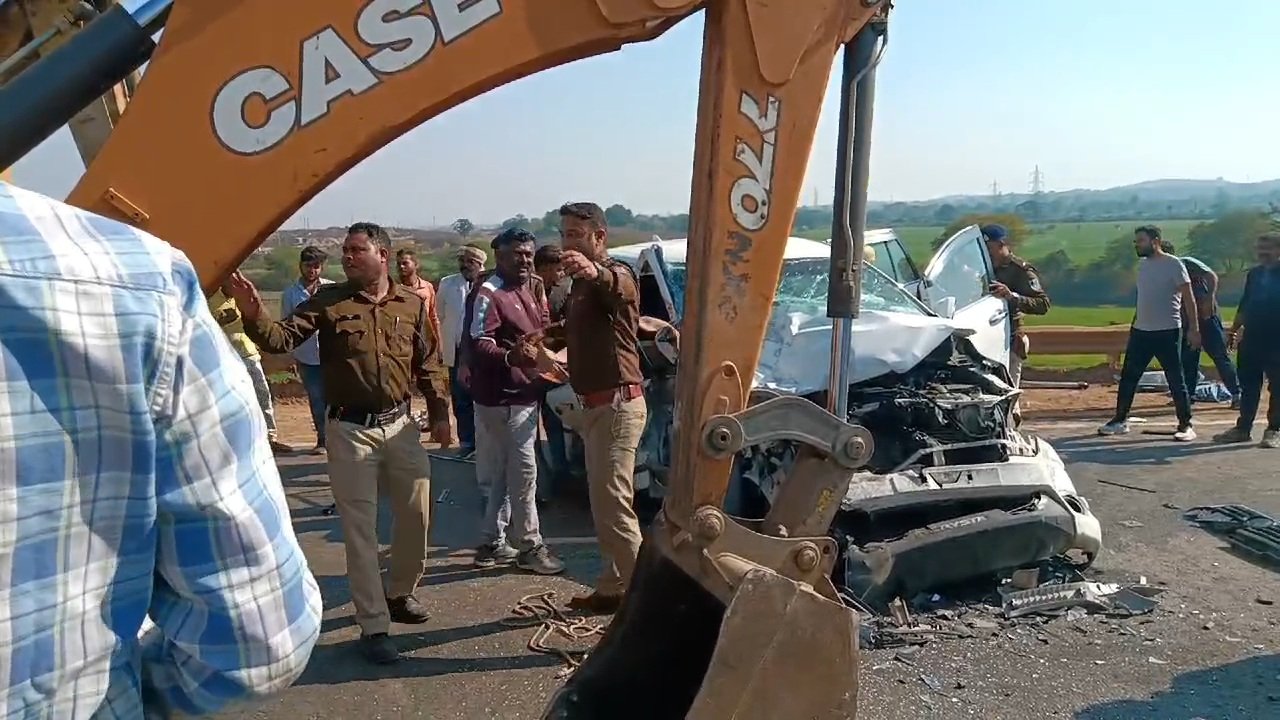 जेसीबी से खींचा, कटर से कार काटी, निकाला गया वाहन चालक