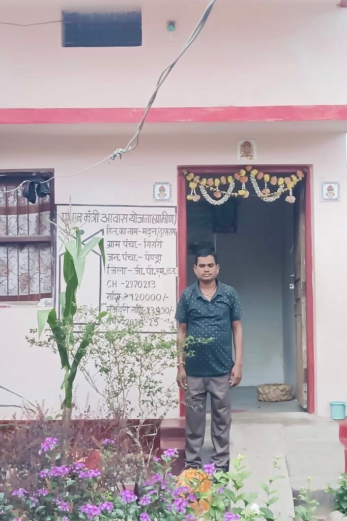 गौरेला पेंड्रा मरवाही, 10 अप्रैल 2026/प्रधानमंत्री आवास योजना (ग्रामीण) से लाखों लोगों के जीवन में बदलाव आया है। इस परिवर्तन की एक प्रेरणादायक कहानी है ग्राम पंचायत गिरारी के मदन की। पेण्ड्रा विकासखण्ड के गिरारी गांव के मदन अपने परिवार के साथ कच्चे मकान में रहते थे, जहां बरसात के मौसम में छत से पानी टपकता था, जिससे उन्हें सिर्फ परेशानी ही नहीं होती थी बल्कि परिवार की सुरक्षा भी खतरे में रहती थी। हर साल बारिश उनके लिए चिंता और परेशानी का कारण बन जाती थी।