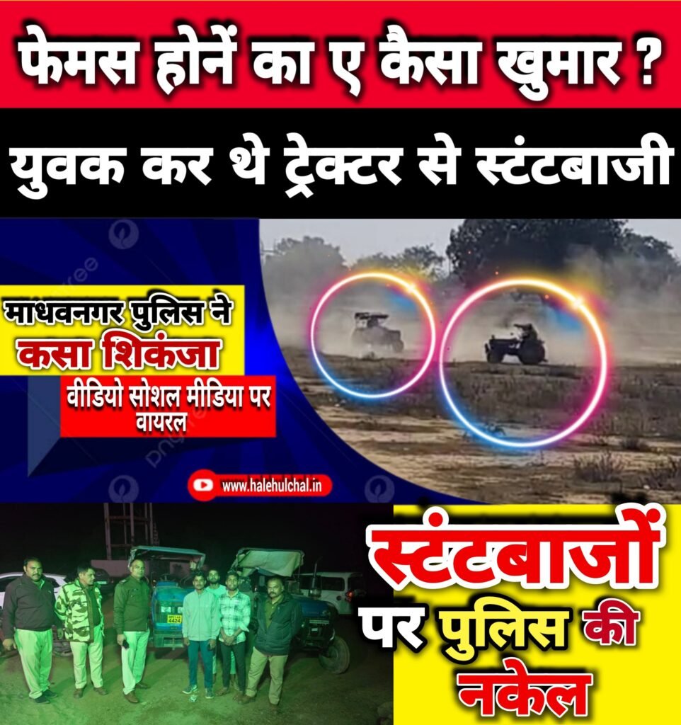 स्टंटबाजों पर माधव नगर पुलिस ने कसा शिकंजा, ट्रैक्टर से कर रहें थे खतरनाक स्टंट… देखे वीडियो….