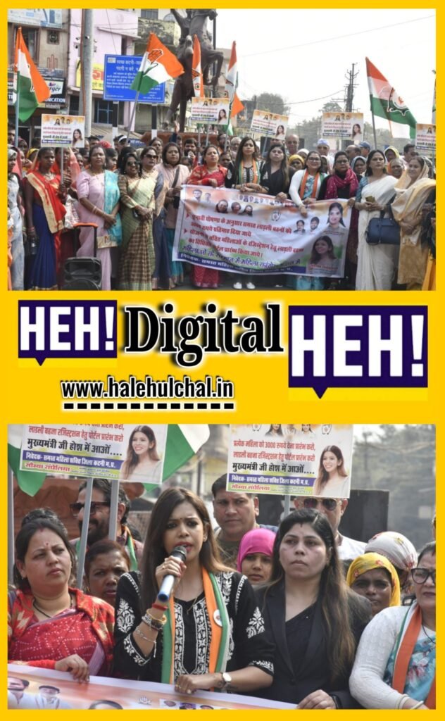 महिला कांग्रेस का जोरदार प्रदर्शन, लाड़ली बहना योजना की राशि 3000 करने व नए रजिस्ट्रेशन पोर्टल की मांग