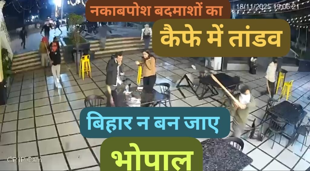 भोपाल। मध्य प्रदेश की राजधानी भोपाल में नकाबपोश बदमाशों द्वारा मैजिक स्पॉट कैफे पर किए गए हमले ने शहर की कानून व्यवस्था की नींव हिलाकर रख दी है। तलवार और डंडों से लैस 20–25 बदमाशों ने जिस बेखौफ अंदाज में कैफे में घुसकर तोड़फोड़ की, उसने राजधानी को अपराध के नए चेहरे से रूबरू करा दिया है। CCTV फुटेज में दिख रहे दृश्य किसी फिल्मी सीन जैसे नहीं, बल्कि बिहार और यूपी में कुख्यात गैंगों द्वारा अपनाए जाने वाले उसी तांडव-स्टाइल की याद दिलाते हैं।