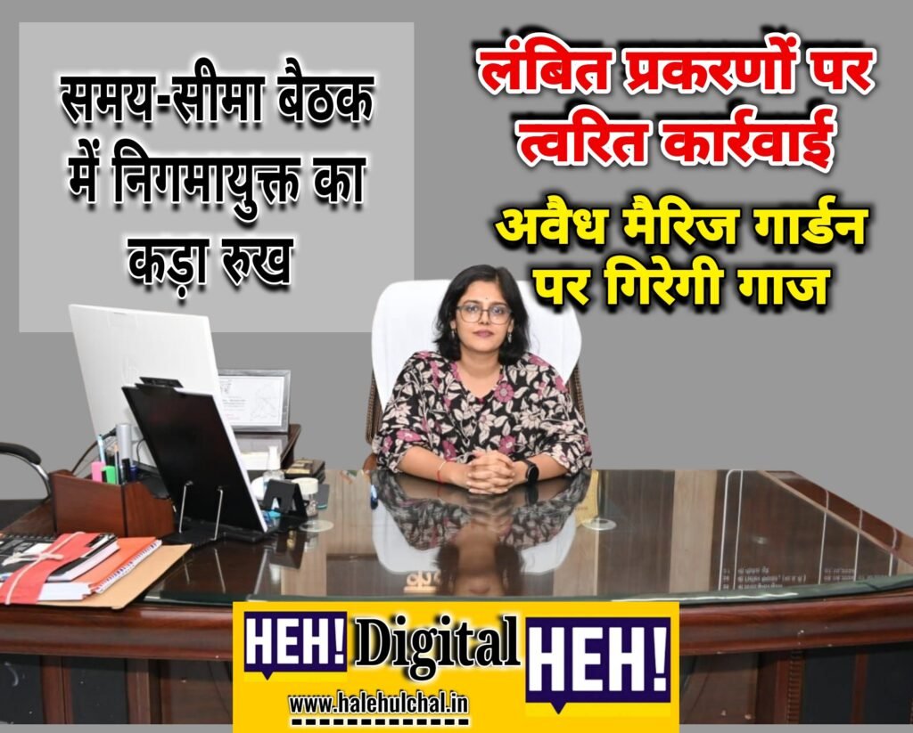 समय-सीमा बैठक में निगमायुक्त का कड़ा रुख लंबित प्रकरणों पर त्वरित कार्रवाई, अवैध मैरिज गार्डन पर गिरेगी गाज