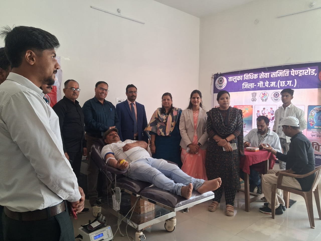 व्यवहार न्यायालय पेण्ड्रारोड में आयोजित नेशनल लोक अदालत में अनेक पक्षकार लाभान्वित हुए है तथा न्यायाधीशगण, अधिवक्तागण द्वारा न्यायालय परिसर में उपस्थित पक्षकारों को विधिक जागरूकता कार्यक्रम नालसा (जागृति) स्कीम, 2025 के तहत किया गया एवं लोक अदालत में जिला स्वास्थ्य समिति, जिला-गौरेला – पेण्ड्रा-मरवाही छ०ग० द्वारा रक्तदान शिविर एवं स्वास्थ्य शिविर लगाकर जरूरत मंद लोगो को सुविधा प्रदान की गई। रक्तदान शिविर में व्यवहार न्यायालय पेण्ड्रारोड में कार्यरत अधिवक्ता श्री शैलेन्द्र चतुर्वेदी, श्री दीपक सोनी अधिवक्ता, श्री मनीष कुमार नामदेव प्रस्तुतकार, श्री रितेश गुप्ता अधिवक्ता, कुमारी शीतला तिवारी अधिवक्ता, श्री पुष्पेन्द्र वैश्य अधिवक्ता, श्री संतोष साहू अधिवक्ता के द्वारा रक्त दान कर स्वास्थ्य विभाग एवं जरूरत मंद लोगों को सुविधा प्रदान कर देश एवं समाज के प्रति बहुत ही सराहनीय कार्य कर लोगों के मन में जागरूकता लाये जाने का प्रयास किया गया है, जो बहुत ही सराहनीय कार्य है।