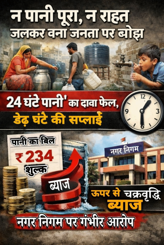 न पानी पूरा, न राहत जलकर बना जनता पर बोझ,24 घंटे पानी’ का दावा फेल, डेढ़ घंटे की सप्लाई, 234 रुपये शुल्क और ऊपर से चक्रवृद्धि ब्याज-नगर निगम पर गंभीर आरोप