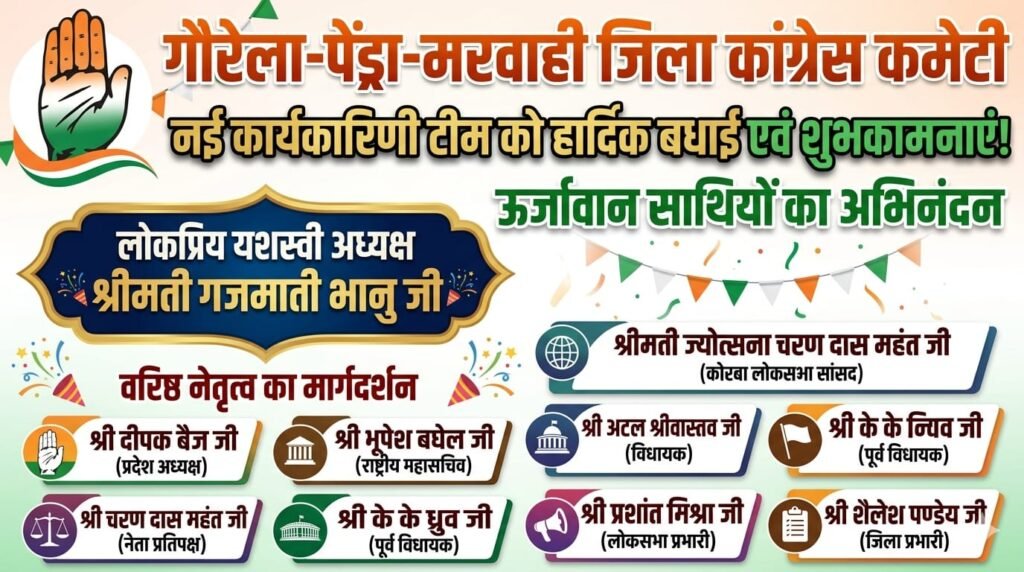 जिला कांग्रेस कमेटी गौरेला-पेंड्रा-मरवाही की नई कार्यकारिणी घोषित,