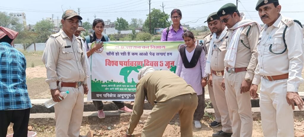 अनूपपुर/मुख्य वन संरक्षक वनवृत शहडोल एल,एल,उइके के निर्देशानुसार एवं वनमंडलाधिकारी अनूपपुर एस,के,प्रजापति के मार्गदर्शन में तथा ए,के,निगम वनपरि क्षेत्राधिकारी अनूपपुर के नेतृत्व में विश्व पर्यावरण दिवस के उपलक्ष्य में 05 जून 2023 को तुलसी महाविद्यालय अनूपपुर में विश्व पर्यावरण दिवस पर महाविद्यालय के प्राचार्य एवं प्रोफेसर तथा छात्र छात्राओं की उपस्थिति में महाविद्यालय में कार्यक्रम आयोजित किया गया पर्यावरण सुरक्षित रखने हेतु शपथ दिलाई गई इस दौरान महाविद्यालय प्रांगण में छायादार,शोभादार एवं फलदार पौधों का रोपण महाविद्यालय के छात्र छात्राओं के सहयोग से किया गया।