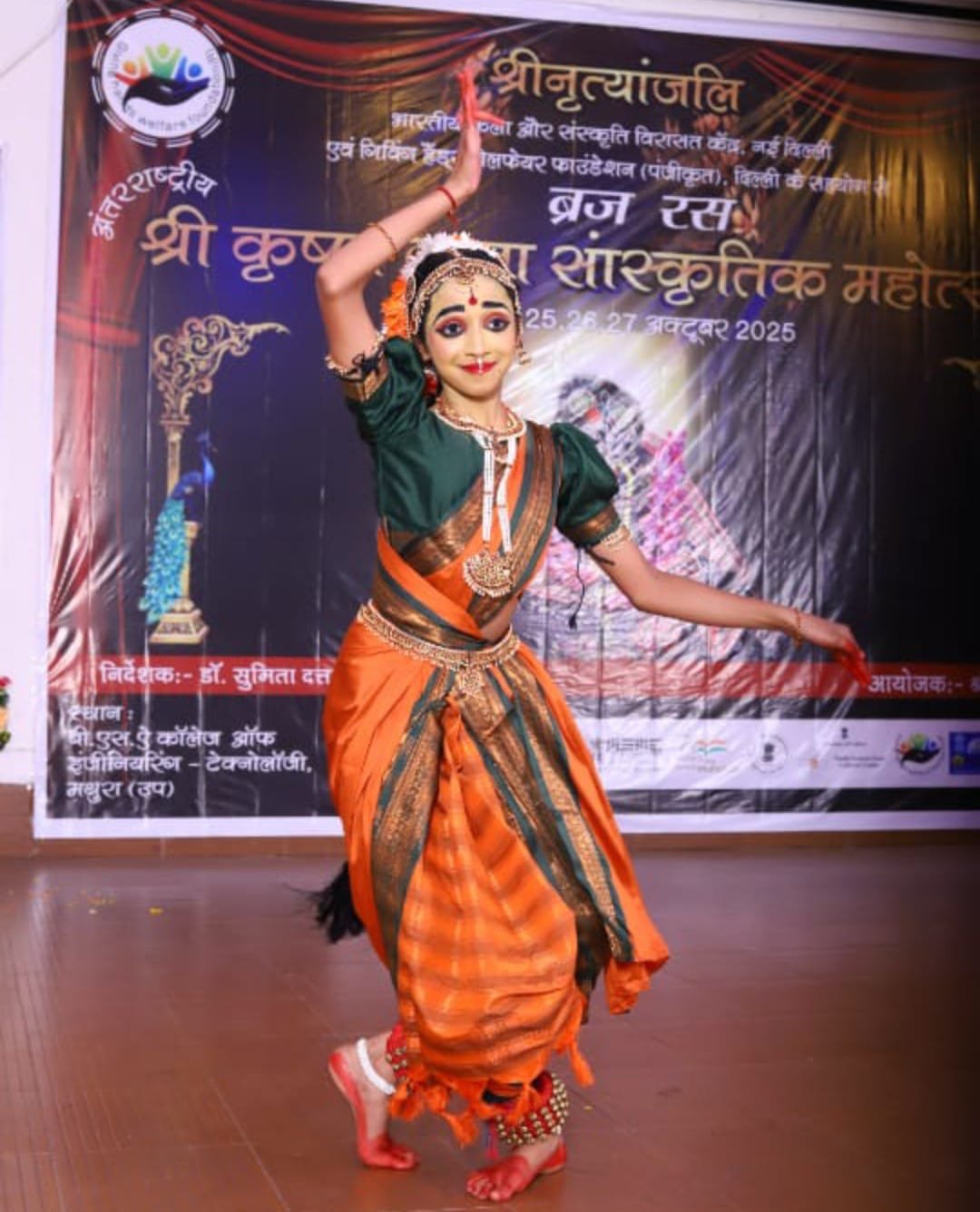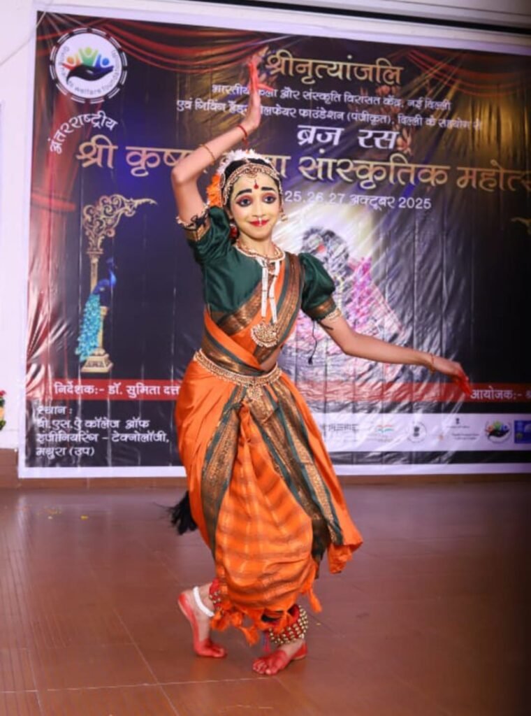 इसी तारतम्य में बृज भूमि मथुरा में आयोजित हुई अंतरराष्ट्रीय भरतनाट्यम नृत्य प्रतियोगिता में प्रियल तिवारी ने लगातार 12 मिनट हनुमान चालीसा पर आधारित भरतनाट्यम नृत्य कर अपने उम्र के प्रतिभागियों में प्रथम स्थान अर्जित किया है।