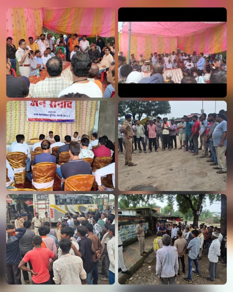 कटनी।। जिले के सभी पुलिस थानों द्वारा एक साथ जन संवाद कार्यक्रम आयोजित किए गए। इन कार्यक्रमों का मुख्य उद्देश्य पुलिस एवं जनता के बीच आपसी समन्वय को मजबूत करना, अफवाहों से दूर रखना तथा शांति और सुरक्षा की भावना को प्रबल बनाना रहा। प्रमुख जन संवाद स्थल एवं गतिविधियों के तहत थाना NKJ अंतर्गत बजरिया मे मुडवारा विधायक संदीप जयसवाल की उपस्थिति में अतिरिक्त पुलिस अधीक्षक संतोष कुमार डेहरिया , एसडीएम प्रमोद चतुर्वेदी, थाना प्रभारी NKJ अनिल यादव, थाना प्रभारी जीआरपी एल.पी. कश्यप, थाना प्रभारी आरपीएफ चौकी महेश मीणा सहित पुलिस स्टाफ व स्थानीय जनता एवं रेलवे कर्मचारियों के बीच संवाद आयोजित किया गया। इस अवसर पर पुलिस प्रशासन की कार्यप्रणाली एवं सुरक्षा उपायों से नागरिकों को अवगत कराते हुए एक सुरक्षित वातावरण निर्माण का भरोसा दिलाया गया। वही पाठक पार्किंग यार्ड, कैमोर, थाना रंगनाथ नगर क्षेत्र लखेरा एवं जयहिंद चौक,ग्राम बड़ारी थाना बड़वारा, ग्राम कौड़ियां थाना स्लीमनाबाद, ग्राम देवरी, तिगमां एवं आमगवां तिगमां मंदिर प्रांगण, ग्राम मझगांव फाटक थाना कुठला,ग्राम पथराड़ी पिपरिया एवं ग्राम कैमोरी थाना बहोरीबंद, ग्राम धारवाडा थाना स्लीमनाबाद, ग्राम भदौरा थाना बड़वारा,थाना विजयरघवगढ़ बस स्टैण्ड एवं काटी मोड़,ग्राम भटवा टोला थाना बहोरीबंद, चौकी खितौली थाना बरही,ग्राम मोहतरा थाना बाकल मे आयोजित किया गया। जन संवाद के दौरान पुलिस अधिकारियों ने आम नागरिकों से अपील और आग्रह किया कि किसी भी प्रकार की अफवाह या भ्रामक समाचार पर ध्यान न दें। संदिग्ध गतिविधियों की तुरंत सूचना पुलिस को दें। किसी भी स्थिति में भीड़ द्वारा स्वयं न्याय करने से बचें।