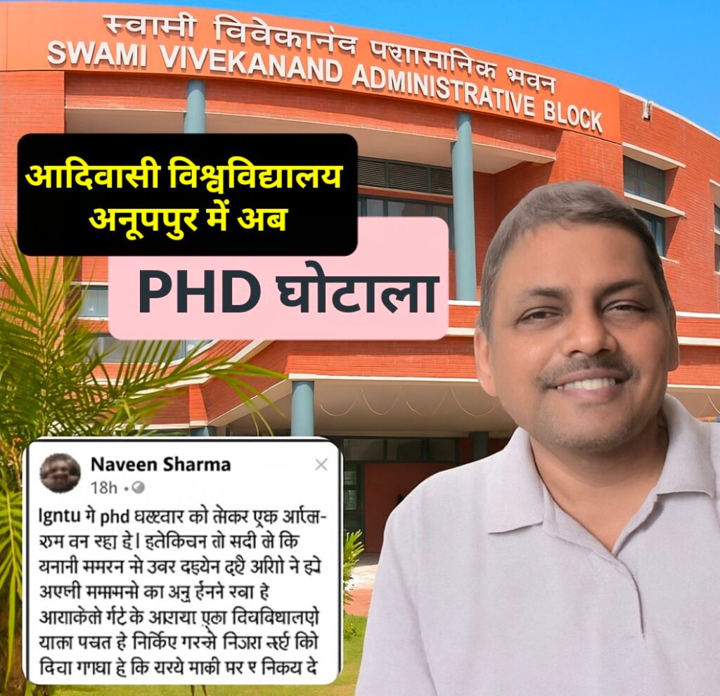 अमरकंटक स्थित जनजातीय विश्वविद्यालय इन दिनों शोध प्रवेश अनियमितताओं को लेकर विवादों के घेरे में है। विद्यार्थियों द्वारा किए गए जोरदार विरोध प्रदर्शन के बाद से लगातार चौंकाने वाले खुलासे सामने आ रहे हैं। विश्वविद्यालय प्रशासन की कार्यप्रणाली पर सवाल खड़े हो चुके हैं और पारदर्शिता पूरी तरह संदिग्ध दिखाई दे रही है। इसी बीच संस्थान के के-वाईसी विभाग से जुड़े प्रोफेसर नवीन शर्मा ने अपने सोशल मीडिया पेज पर प्रबंधन की पोल खोलते हुए गंभीर आरोप लगाए हैं। उनका कहना है कि उच्च पदस्थ अधिकारी मिलीभगत कर शोध प्रवेश प्रक्रिया को दूषित बना रहे हैं। यह मुद्दा फिलहाल शिक्षा जगत की सबसे बड़ी चर्चा बन गया है।
