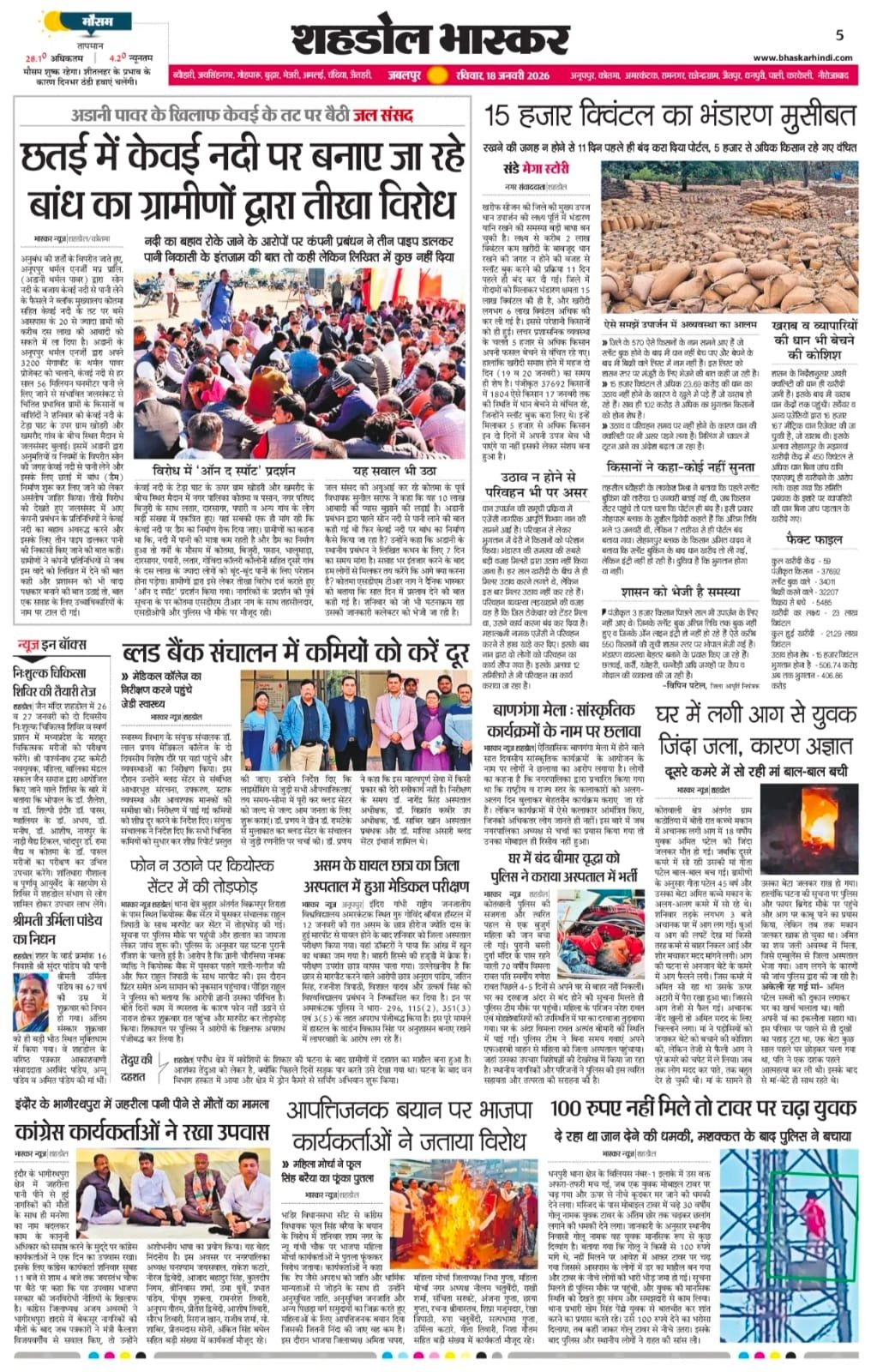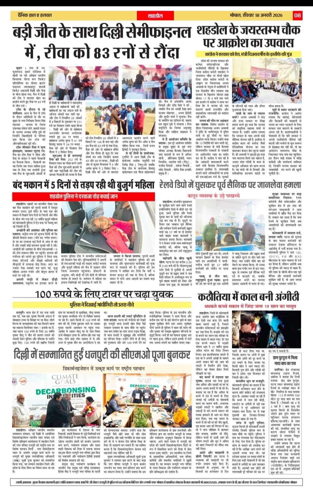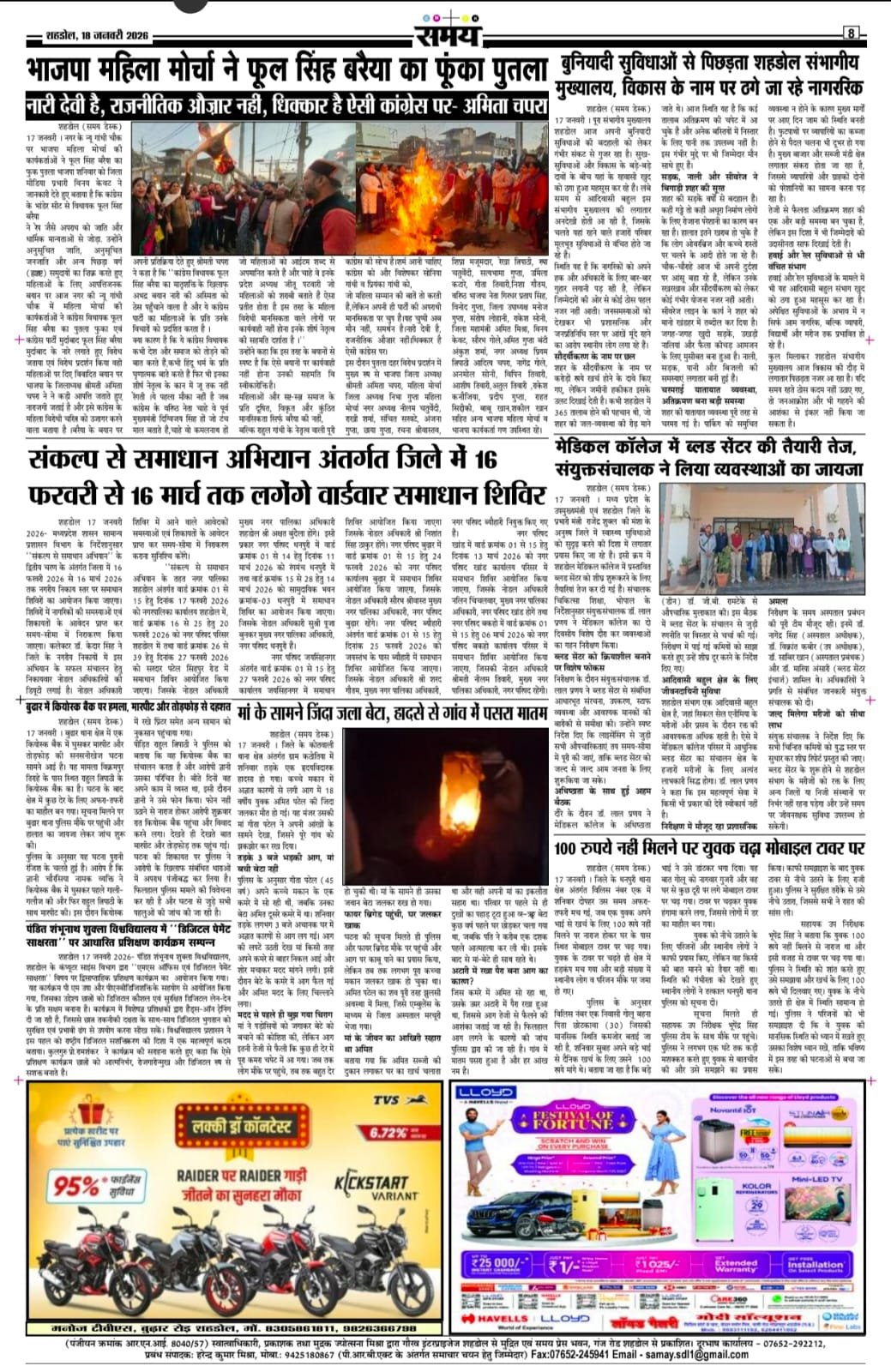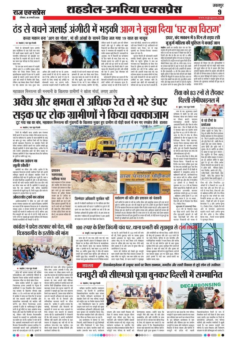 Uncategorized शहडोल जिले की आज की सुर्खियां Staff January 18, 2026 0 Continue Reading Previous नियुक्ति उपरांत तीनों ब्लाक अध्यक्षों ने महंत दंपति और जयसिंह अग्रवाल को धन्यवाद देने कोरबा पहुंचे।Next उमरिया जिले की आज की सुर्खियां More Stories Uncategorized विश्वकर्मा जयंती पर शिव नगर में प्राण प्रतिष्ठा महायज्ञ, महापौर ने की पूजा-अर्चना, श्रद्धालुओं को दी शुभकामनाएं Staff January 31, 2026 0 Uncategorized कर नहीं चुकाने वालों पर निगम का शिकंजा, 6 संपत्तियों पर तालाबंदी Staff January 31, 2026 0 Uncategorized नगर निगम की अतिक्रमण पर सख्ती जारी,पुराने शहर के बाजारों सहित कई इलाकों से 4 ट्रक सामान जप्त Staff January 31, 2026 0 Leave a Reply Cancel replyYour email address will not be published. Required fields are marked *Comment * Name * Email * Website Save my name, email, and website in this browser for the next time I comment. Δ