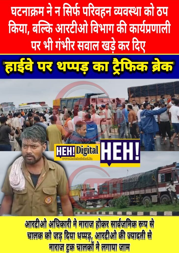 “हाईवे पर थप्पड़ का ट्रैफिक ब्रेक” आरटीओ की ज्यादती से नाराज ट्रक चालकों ने लगाया जाम,