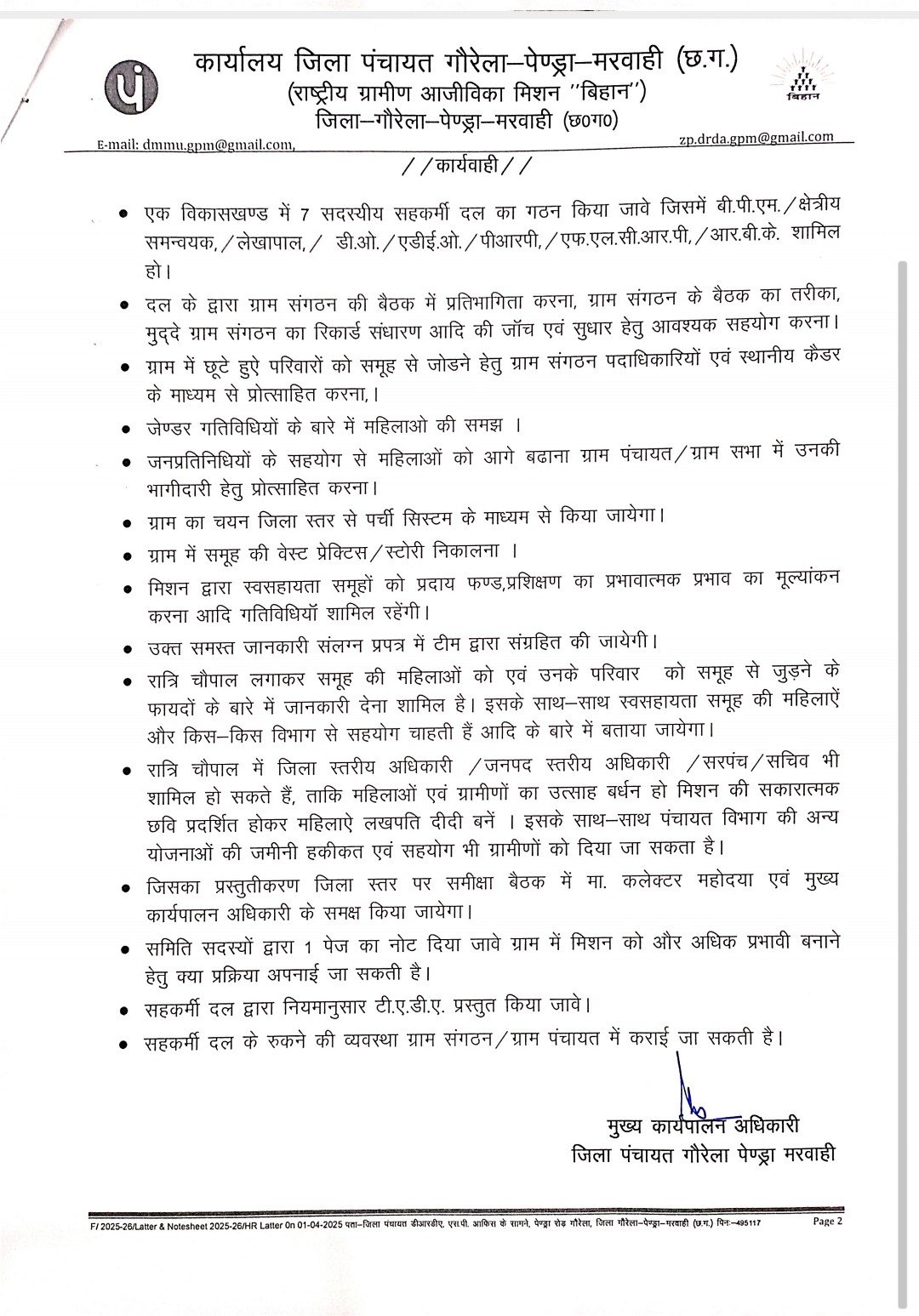 गौरेला-पेण्ड्रा-मरवाही (जीपीएम) जिला पंचायत द्वारा ‘बिहान’ (राष्ट्रीय ग्रामीण आजीविका मिशन) के तहत एक महत्वाकांक्षी आदेश जारी किया गया है।