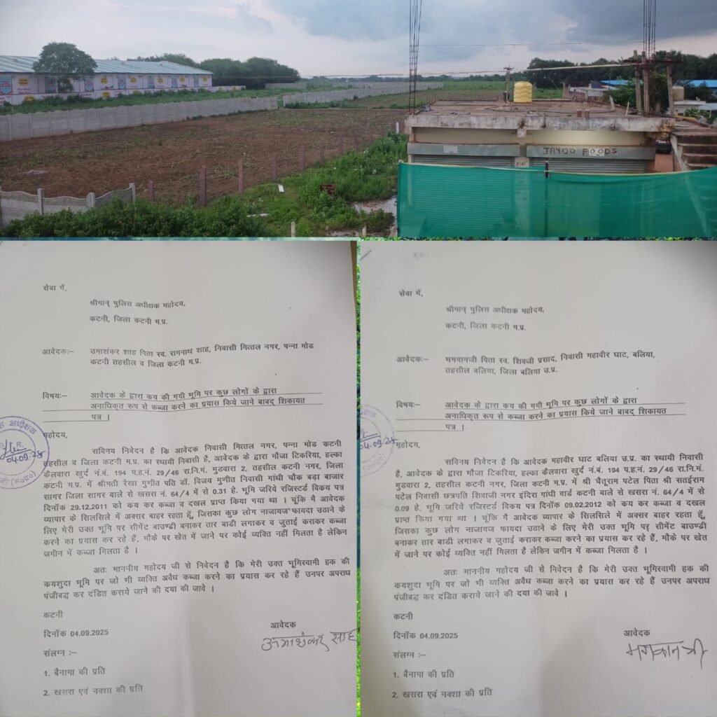 कटनी। जबलपुर-रीवा बायपास मार्ग पर इंद्रानगर पहरूआ के पास भूमाफियाओं की नजर अब निजी स्वामित्व की जमीनों पर गड़ चुकी है। हाइवे से लगी बेशकीमती जमीनों पर कब्जे की होड़ मची हुई है। हालात ऐसे हैं कि शासकीय भूमि के साथ-साथ निजी भू-स्वामियों की जमीन भी भूमाफियाओं के निशाने पर है। पीड़ित जमीन मालिकों का कहना है कि वे बार-बार पुलिस और प्रशासन से शिकायत कर रहे हैं, लेकिन कार्रवाई के अभाव में भूमाफियाओं के हौसले बुलंद हैं। हाल ही में एक मामला तब सामने आया जब गल्ला कारोबारी भगवानजी निवासी महावीर घाट, बलिया, उत्तर प्रदेश की खरीदी हुई भूमि पर अज्ञात व्यक्तियों ने कब्जा कर लिया। शिकायत में बताया गया कि उक्त भूमि खसरा नंबर-64/4, क्षेत्रफल 0.09 हेक्टेयर पर पत्थर गाड़कर बाड़बंदी कर दी गई और ट्रैक्टर से जुताई तक करा दी गई।