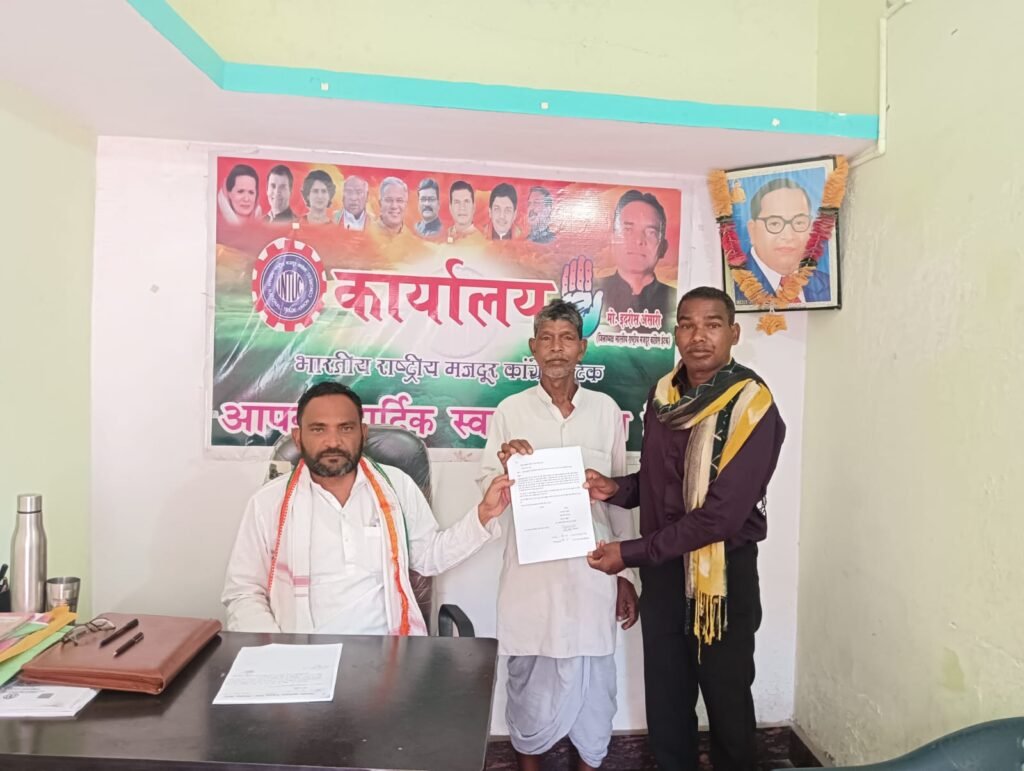 गरीब आदिवासी की जमीन पर दबंगों ने किया है कब्जा शिकायत पर कोई कार्रवाई नहीं होने के बाद फरियादी पहुंचे इंटक कार्यालय