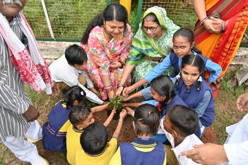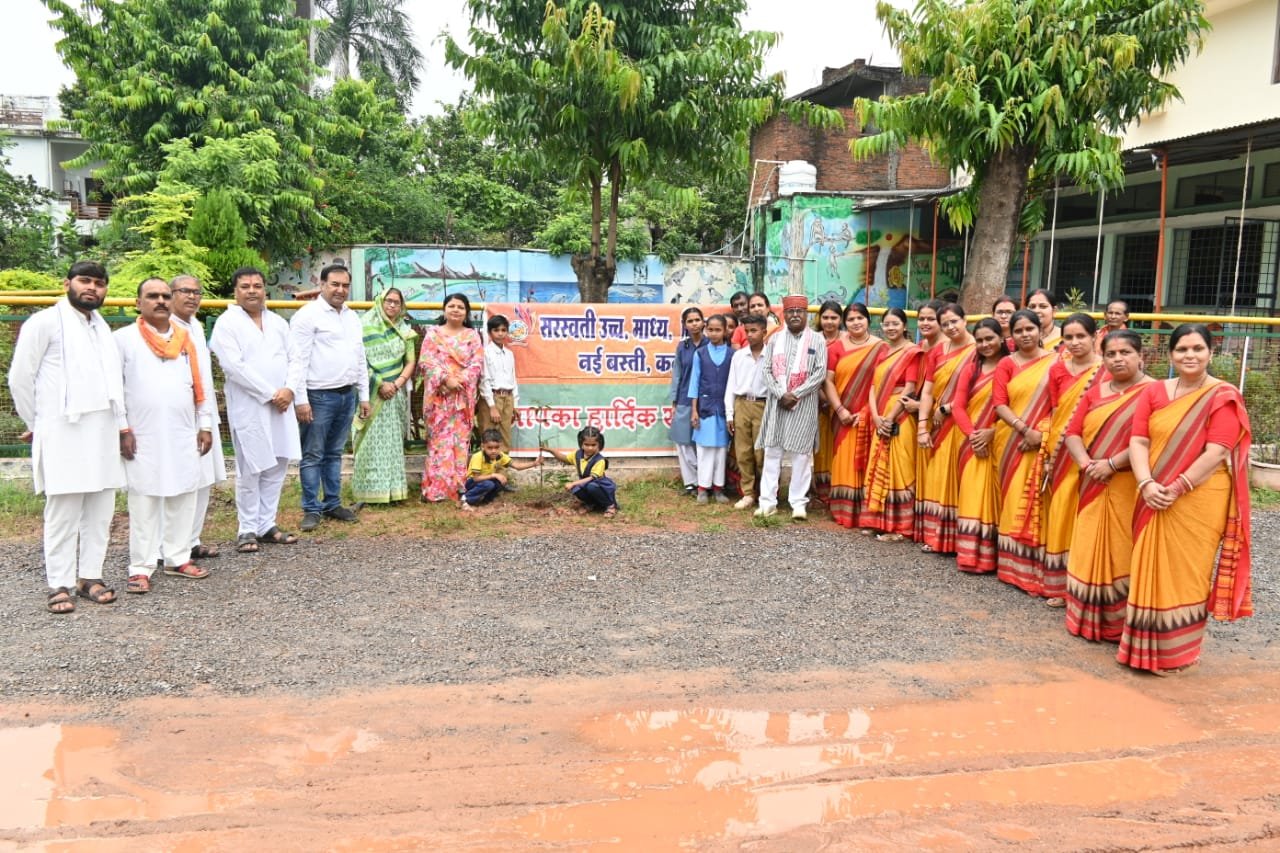 सरस्वती उच्चतर माध्यमिक विद्यालय नई बस्ती में महापौर ने छात्रों के साथ किया पौधारोपण