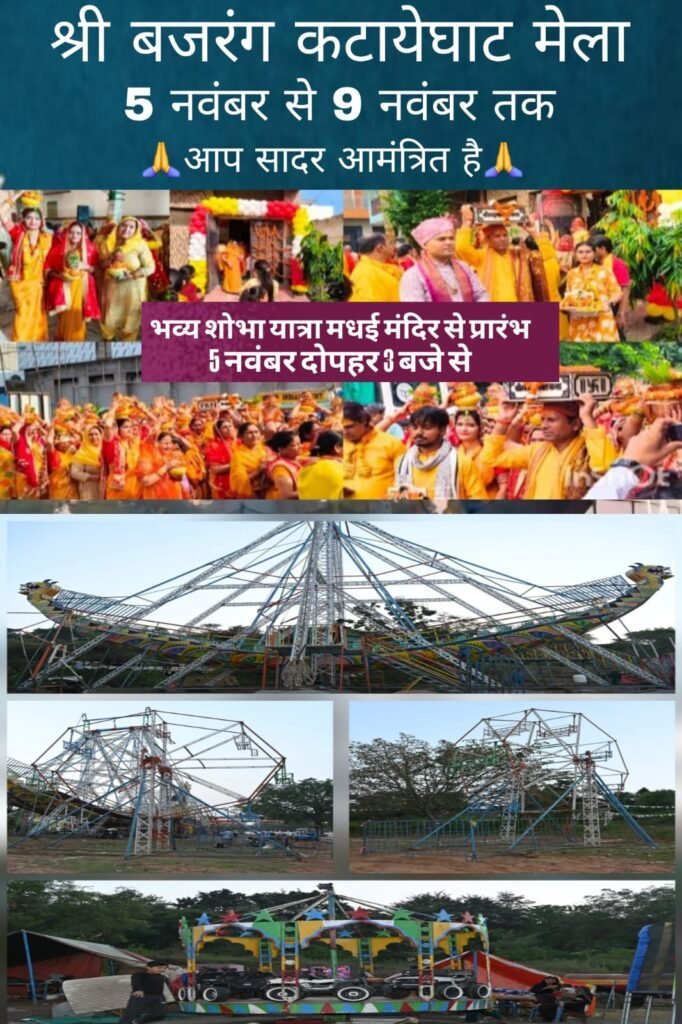 भव्य शोभायात्रा एवं जुलूस के साथ होगा श्री बजरंग बली कटायेघाट मेले का शुभारंभ मधई मंदिर से दोपहर 3 बजे प्रारंभ होगी शोभायात्रा, नगर के मुख्य मार्गों से होते हुए पहुंचेगी कटायेघाट तक
