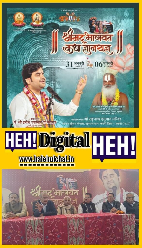 कटनी की पावन धरती एक बार फिर धर्म, भक्ति और सनातन चेतना की साक्षी बनने जा रही है। वर्षों बाद ऐसा दिव्य अवसर आया है जब नगर श्रीमद्भागवत कथा के अमृत से सराबोर होगा। यह आयोजन केवल एक कथा नहीं, बल्कि आध्यात्मिक इतिहास में जुड़ने जा रहा एक स्वर्णिम अध्याय है, जो नगर को भक्ति के वैश्विक मानचित्र पर प्रतिष्ठित करेगा। नगर के लिए परम सौभाग्य का क्षण है, जब प्रभु कृपा से संपूर्ण नगर श्रीमद्भागवत कथा के दिव्य प्रवाह में डूबने जा रहा है। धर्म, संस्कार और सनातन परंपरा को सुदृढ़ करने वाला यह महोत्सव न केवल श्रद्धालुओं की आस्था को प्रगाढ़ करेगा, बल्कि नगर को एक महान धार्मिक अनुष्ठान का केंद्र बनाएगा।