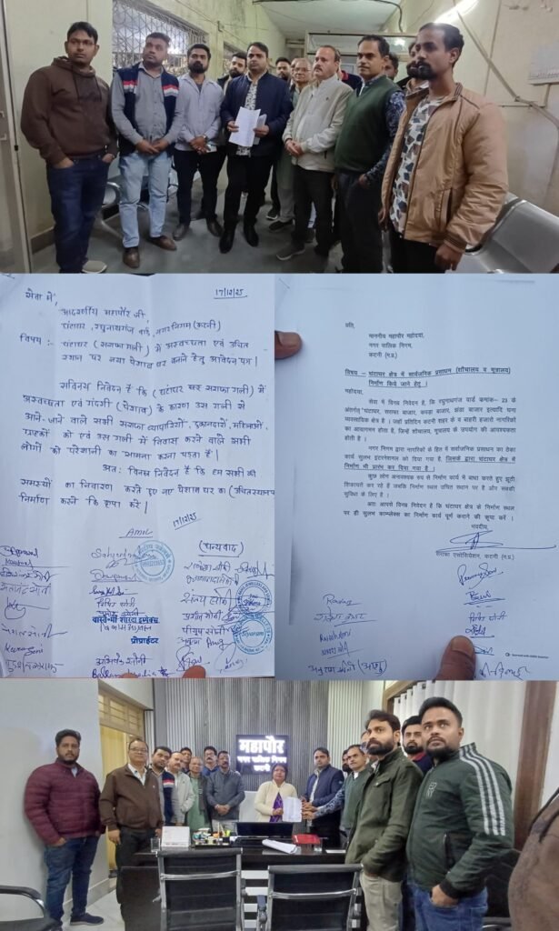 कटनी।। शहर के सबसे व्यस्त और घने व्यवसायिक क्षेत्र घंटाघर में सार्वजनिक प्रसाधन (शौचालय एवं मूत्रालय) की आवश्यकता को लेकर सराफा एसोसिएशन कटनी ने महापौर को ज्ञापन सौंपते हुए निर्माण कार्य को यथास्थान पूर्ण कराने की मांग की है। एसोसिएशन ने स्पष्ट किया है कि घंटाघर, सराफा बाजार, कपड़ा बाजार एवं झंडा बाजार जैसे प्रमुख व्यापारिक क्षेत्रों में प्रतिदिन हजारों स्थानीय एवं बाहरी नागरिकों का आवागमन होता है, लेकिन लंबे समय से यहां सार्वजनिक प्रसाधन की भारी कमी बनी हुई है।