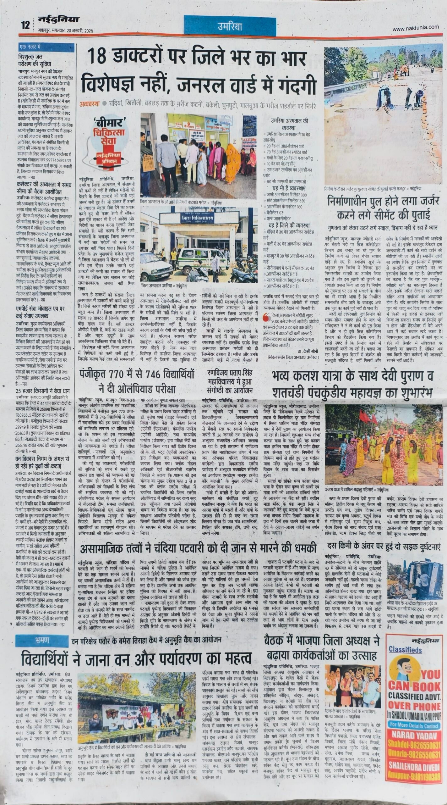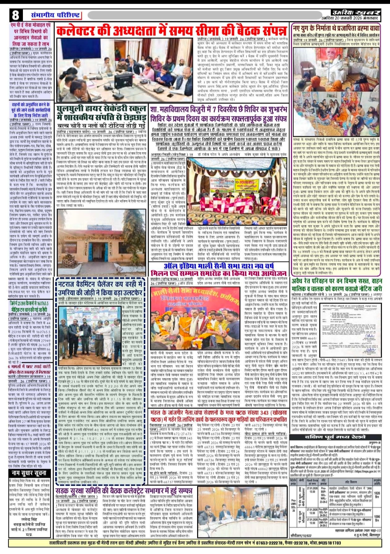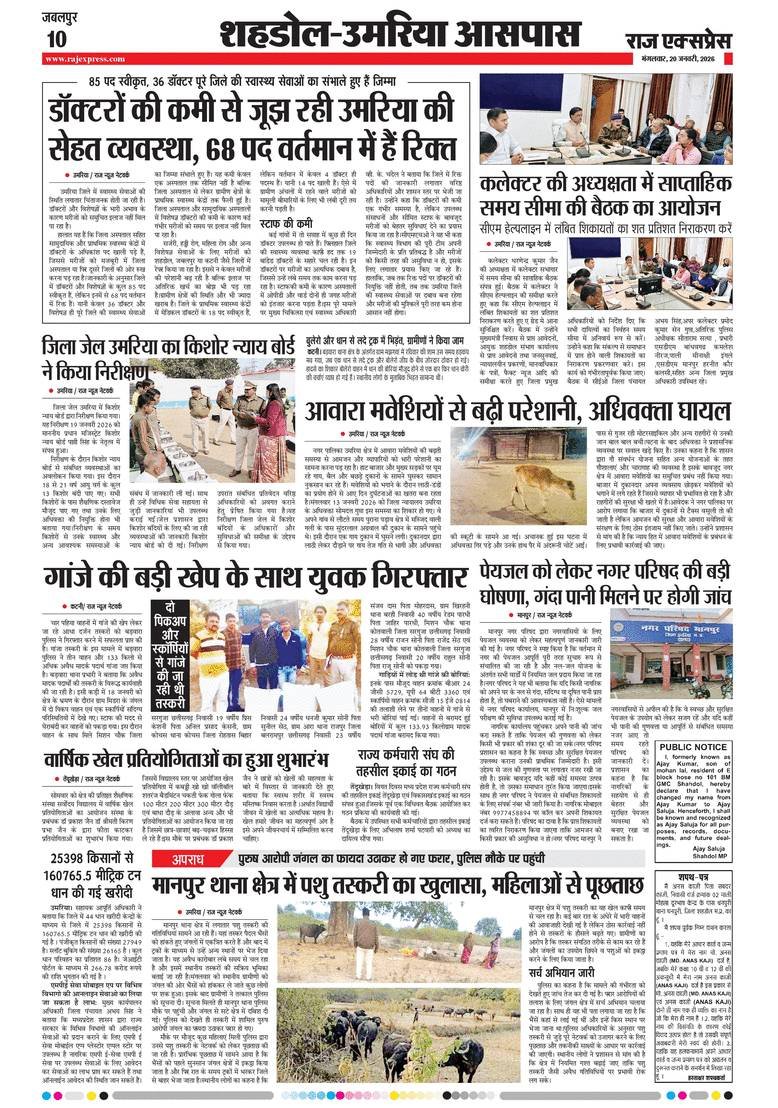 Uncategorized उमरिया जिले के आज प्रमुख समाचार पत्रों के पन्ने, सिर्फ एक क्लिक पर…watch ADMIN January 20, 2026 0 Continue Reading Previous कांग्रेस जनों ने नवनियुक्त ब्लाक अध्यक्षों एवं कांग्रेस संगठन के विभिन्न नवनियुक्त पदाधिकारियों का शपथग्रहण एवं सम्मान कियाNext Today leed news papaer anuppur, अनूपपुर जिले के आज के सभी प्रमुख अखबारों के पन्ने More Stories Uncategorized रेत माफिया का कहर जारी, अवैध उत्खनन से भरे ट्रैक्टर के पलटने से मासूम युवक की मौत, हादसा या सिस्टम की हत्या Staff January 27, 2026 0 Uncategorized रानीझाप की पीड़ित महिला की लड़ाई में सामने आई मानवाधिकार एसोसिएशन एवं महिला कांग्रेस जांच दल गठित Staff January 27, 2026 0 Uncategorized गौरेला ब्लाक कांग्रेस कमेटी के तत्वावधान में संजय चौक में वरिष्ठ कांग्रेसी सुखदेव सिंह ग्रेवाल द्वारा ध्वजारोहण किया गया Staff January 27, 2026 0 Leave a Reply Cancel replyYour email address will not be published. Required fields are marked *Comment * Name * Email * Website Save my name, email, and website in this browser for the next time I comment. Δ