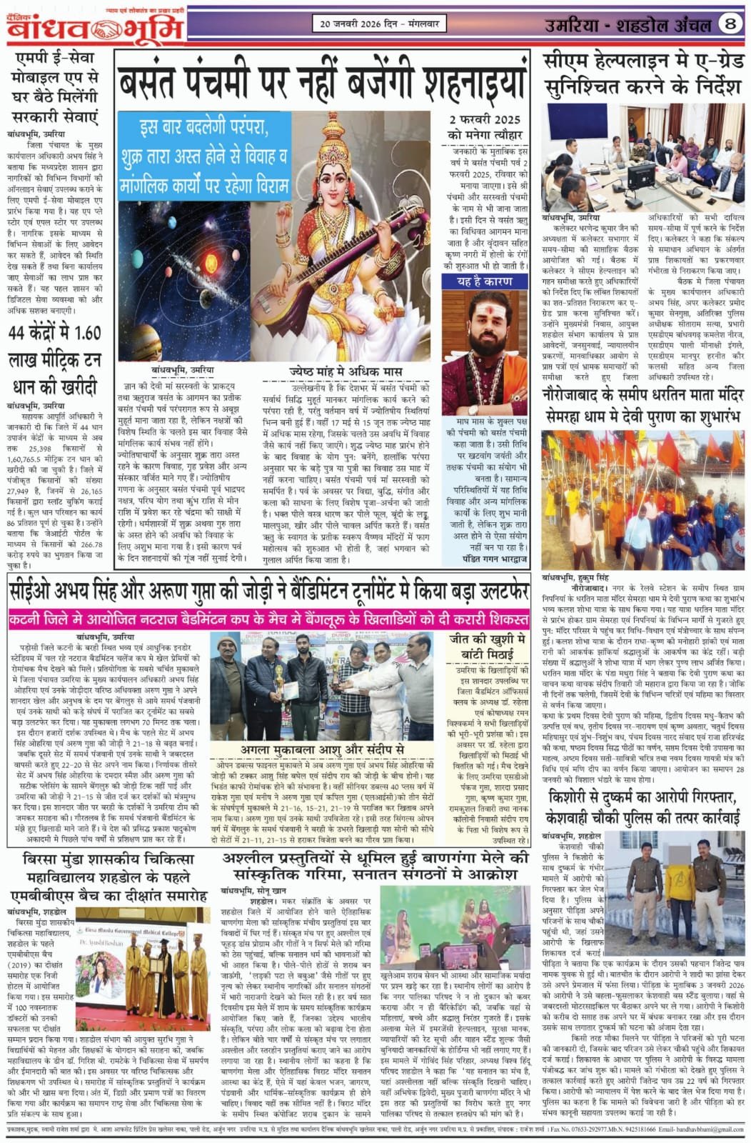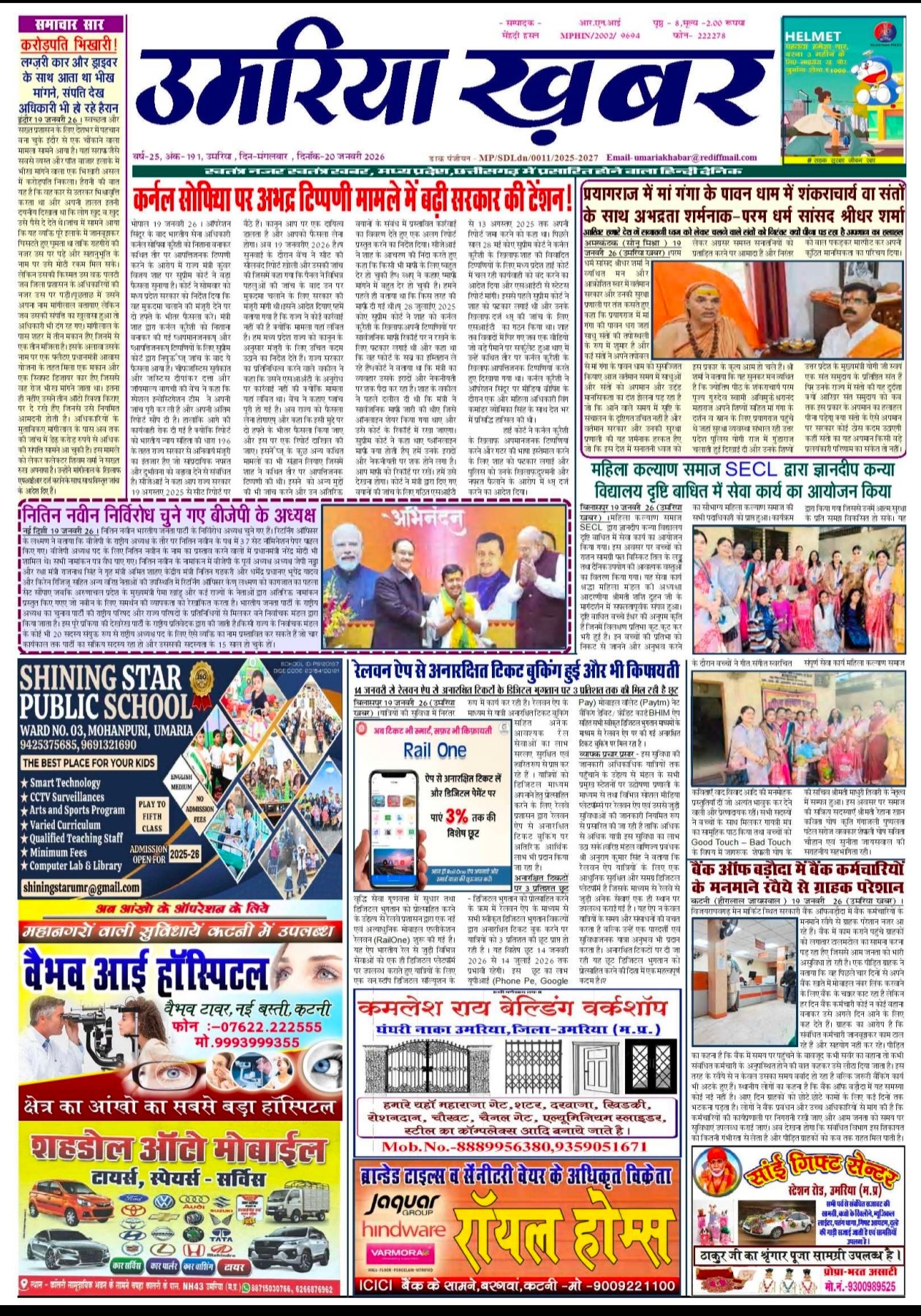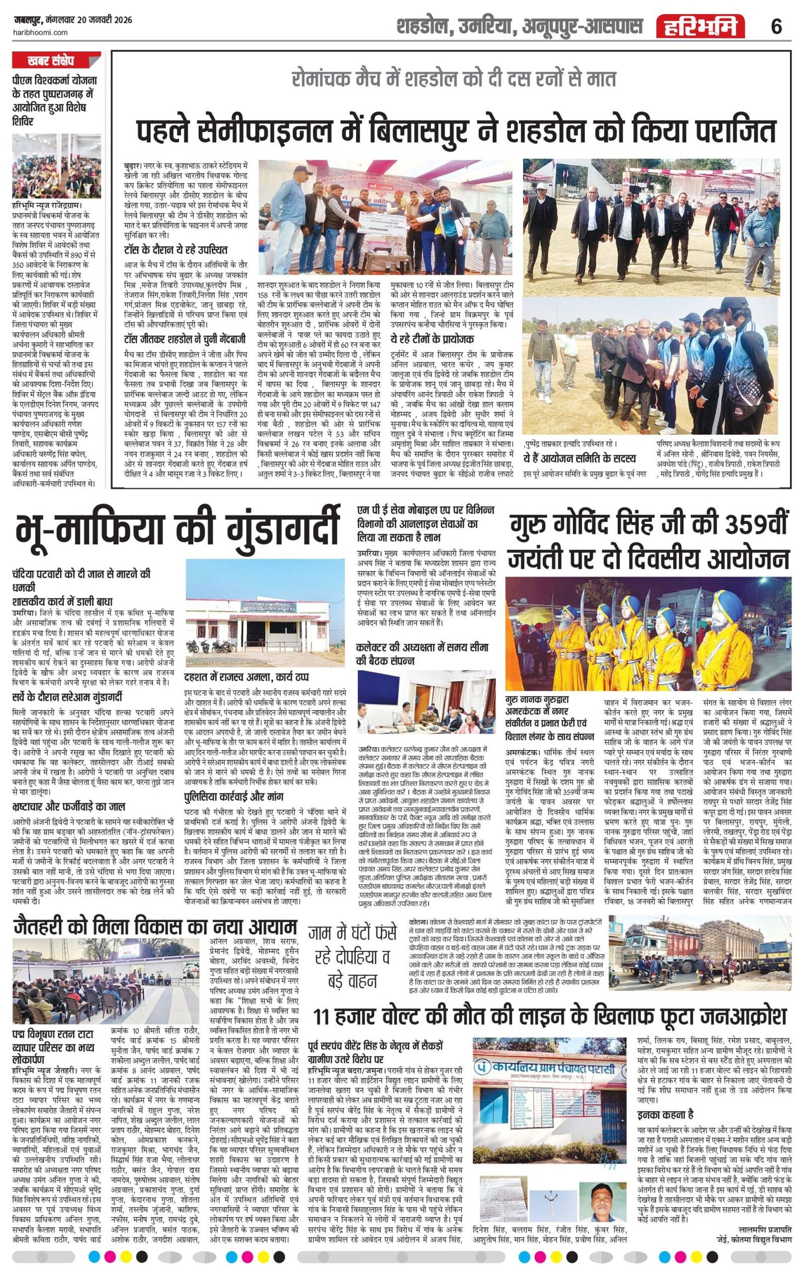 Uncategorized उमरिया जिले के आज प्रमुख समाचार पत्रों के पन्ने, सिर्फ एक क्लिक पर…watch ADMIN January 20, 2026 0 Continue Reading Previous कांग्रेस जनों ने नवनियुक्त ब्लाक अध्यक्षों एवं कांग्रेस संगठन के विभिन्न नवनियुक्त पदाधिकारियों का शपथग्रहण एवं सम्मान कियाNext Today leed news papaer anuppur, अनूपपुर जिले के आज के सभी प्रमुख अखबारों के पन्ने More Stories Uncategorized रेत माफिया का कहर जारी, अवैध उत्खनन से भरे ट्रैक्टर के पलटने से मासूम युवक की मौत, हादसा या सिस्टम की हत्या Staff January 27, 2026 0 Uncategorized रानीझाप की पीड़ित महिला की लड़ाई में सामने आई मानवाधिकार एसोसिएशन एवं महिला कांग्रेस जांच दल गठित Staff January 27, 2026 0 Uncategorized गौरेला ब्लाक कांग्रेस कमेटी के तत्वावधान में संजय चौक में वरिष्ठ कांग्रेसी सुखदेव सिंह ग्रेवाल द्वारा ध्वजारोहण किया गया Staff January 27, 2026 0 Leave a Reply Cancel replyYour email address will not be published. Required fields are marked *Comment * Name * Email * Website Save my name, email, and website in this browser for the next time I comment. Δ