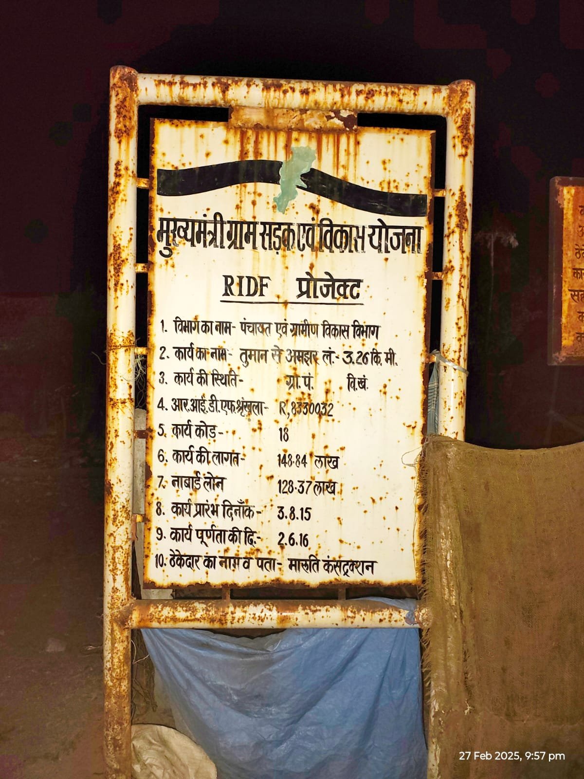 कोरबा/ तुमान -क्षेत्र की महत्वपूर्ण सड़क तुमान से अमझर होते हुए डुमरमुड़ा ग्राम तक जाती है, लेकिन वर्तमान स्थिति में यह सड़क पूरी तरह जर्जर हो चुकी है। ग्रामीणों के अनुसार इस सड़क का निर्माण “मुख्यमंत्री ग्राम सड़क एवं विकास योजना (RIDF प्रोजेक्ट)” के तहत वर्ष 2015 में प्रारंभ किया गया था और 2016 में पूर्ण बताया गया। निर्माण में लगभग 148.84 लाख रुपये खर्च किए गए थे।